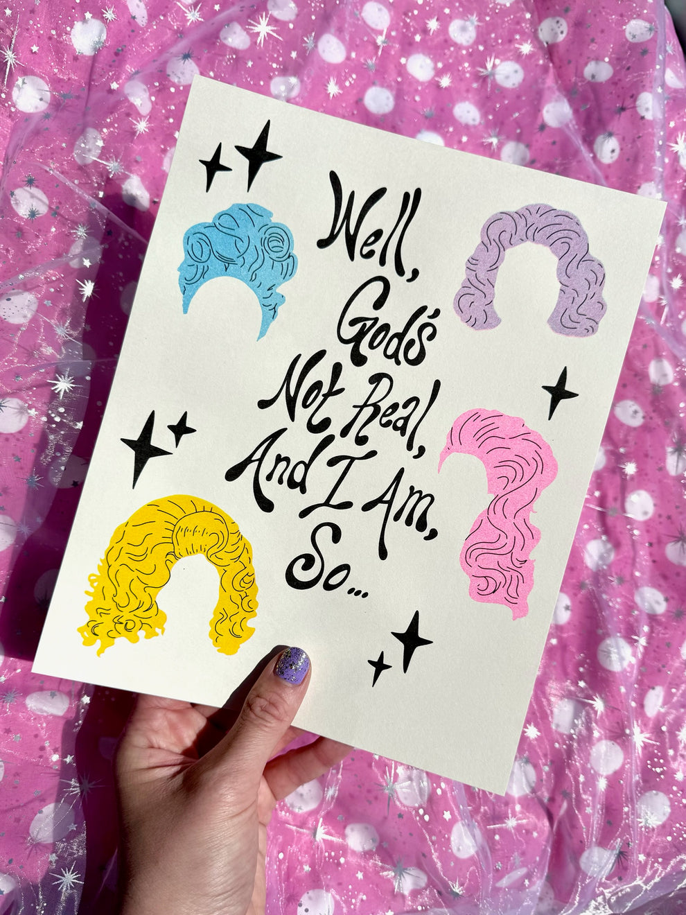 "Well, god's not real, and I am, so..." My god is Trixie Mattel - no I will not ellaborate.
