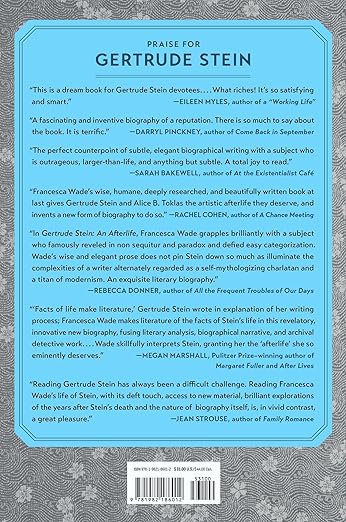 Pushing beyond the conventions of literary biography, Gertrude Stein: An Afterlife is a bold, innovative examination of the nature of legacy and memory itself, in which Wade uncovers the origins of Stein’s radical writing and reveals new depths to the storied relationship that made it possible. A captivating, brilliant work of biography, Gertrude Stein: An Afterlife is a groundbreaking examination of a true literary giant.